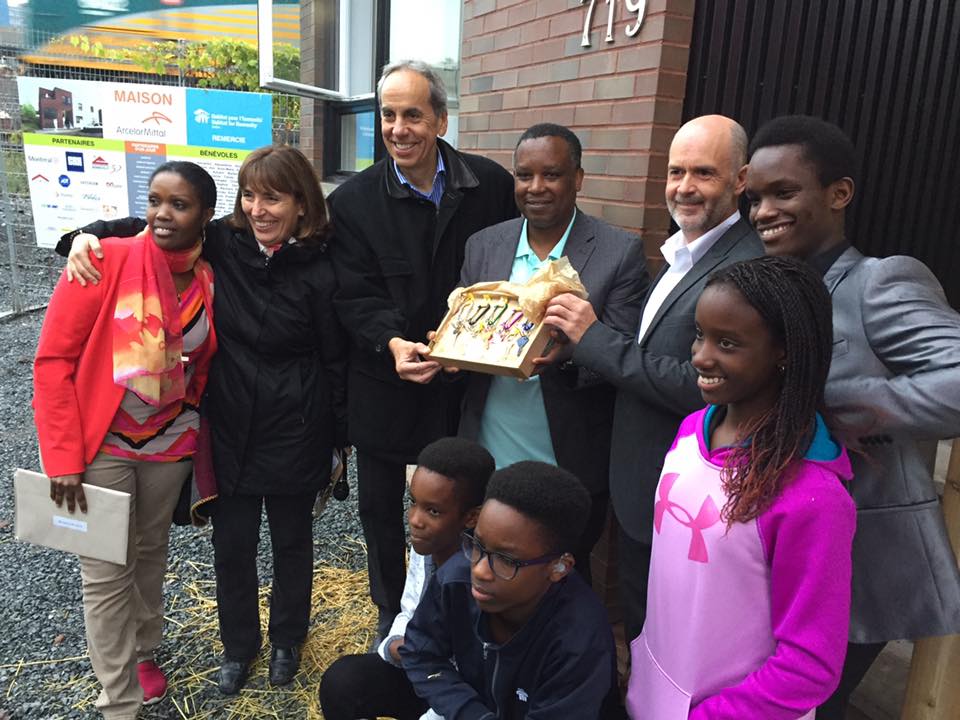 HpH permet aux familles de bénéficier d’une hypothèque sans mise de fonds, abordable et durable, en les aidant à éviter les choix impossibles à faire entre le loyer et les besoins de base et en leur offrant une hypothèque qu’ils peuvent se permettre. Les propriétaires doivent aussi consacrer 500 heures sous forme de bénévolat afin de redonner à la communauté. La maison commanditée par ArcelorMittal a été accordée à la famille de Maurice et Lucie, des réfugiés de l’Ouganda arrivés au Canada en 2000. Tous deux sont maintenant parents de cinq enfants et habitent un petit appartement avec des problèmes de chauffage, ce qui est difficile à endurer si on pense aux durs hivers québécois. Ils ont reçu les clés de leur nouvelle maison lors d’une cérémonie tenue le 20 octobre dernier devant les partenaires de HpH et d’autres dignitaires.