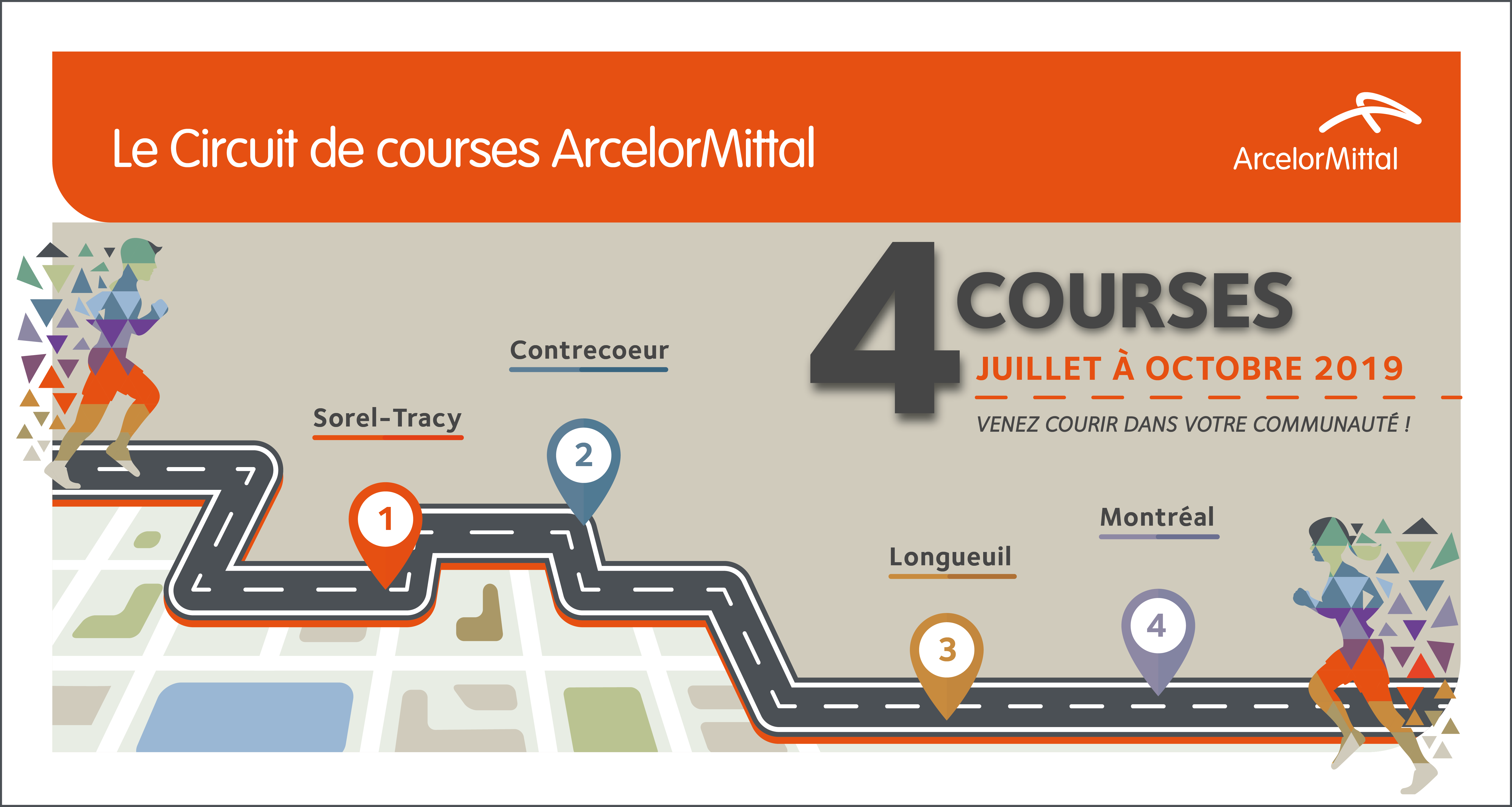 « Avec des distances variées s’adressant à tous les types de coureurs et à tous les âges, tout le monde trouvera chaussure (de course) à son pied parmi les événements du Circuit de courses ArcelorMittal ! », a déclaré François Perras, président-directeur général d’ArcelorMittal Produits longs Canada. « Toute la famille peut s’inscrire aux courses auxquelles nous nous associons et ainsi, s’entraîner ensemble dès maintenant avec un objectif pour plus tard cette année. »