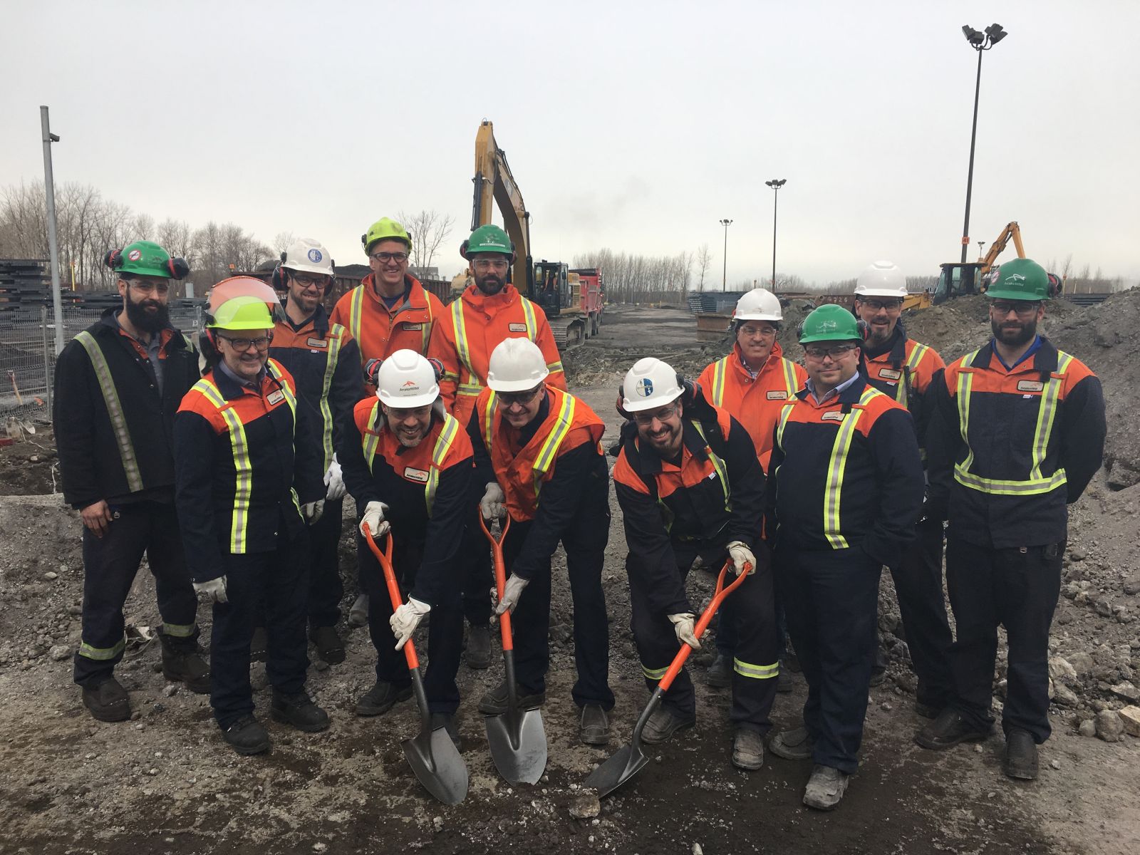 Les travaux entourant le remplacement du four de réchauffe du laminoir de Contrecoeur-Ouest au coût de 33 millions de dollars canadiens ont officiellement débuté dans la semaine du 9 avril avec le début du chantier pour l’aménagement du site. La première pelletée de terre, réalisée avec des pelles de couleur orange ArcelorMittal prévues spécialement pour l’occasion, a été effectuée ce mardi 10 avril en présence de notre président-directeur général, François Perras, et de membres de la direction locale, de l’exécutif syndical et de l’équipe de projet. Le nouveau four permettra d’augmenter la capacité de laminage de l’entreprise et entraînera une plus grande productivité, une utilisation optimale de l’énergie et une réduction des gaz à effet de serre.